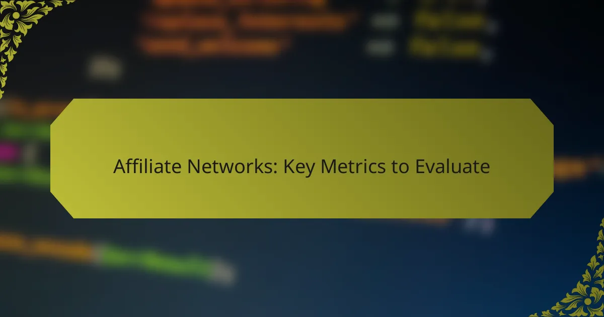 Evaluating key metrics in affiliate networks is essential for understanding their effectiveness and profitability. By focusing on metrics such as conversion rate, average order value, and click-through rate, businesses can gain valuable insights into performance and make informed decisions to optimize their affiliate strategies.